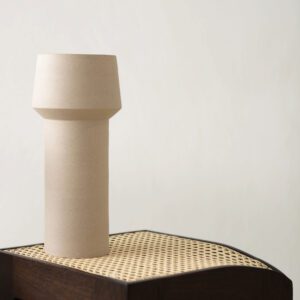 Desligada, a luminária se assemelha a um vaso. Ligada, o interior dela é preenchido por uma luz quente, que transborda e ilumina indiretamente o ambiente. Individualmente torneadas a mão com matéria prima brasileira, cada peça apresenta nuanças de textura e coloração que as tornam únicas.